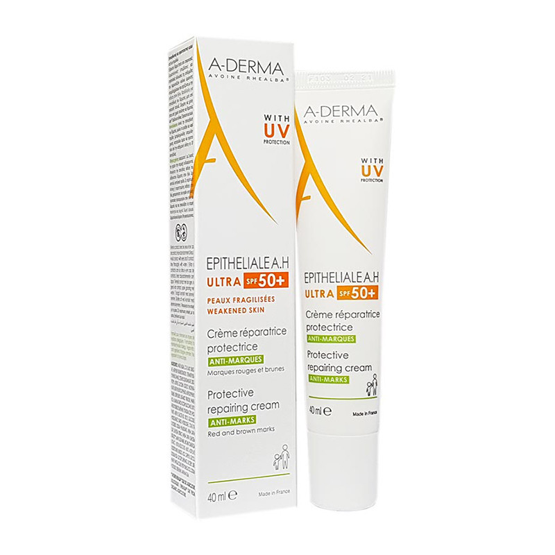 Le soin 2 en 1 EPITHELIALE A.H ULTRA SPF50+ favorise la réparation des peaux fragilisées et leur offre une très haute protection solaire SPF 50+ avec pour objectif un double effet anti-marques cicatricielles et pigmentaires. Sa formule contient un complexe breveté* réparateur, de 3 actifs nommé Cicahyalumide®, composé de Dipeptide, d’Acide hyaluronique et d’Extrait de Plantules d’Avoine Rhealba®. On retrouve également la Liane du Pérou pour ses propriétés ultra-calmantes sur les sensations cutanées désagréables. Et pour assurer une tolérance optimale lors de l’utilisation, son système photoprotecteur comprend seulement 4 filtres en concentration optimisée qui restent à la surface de la peau même fragilisée.