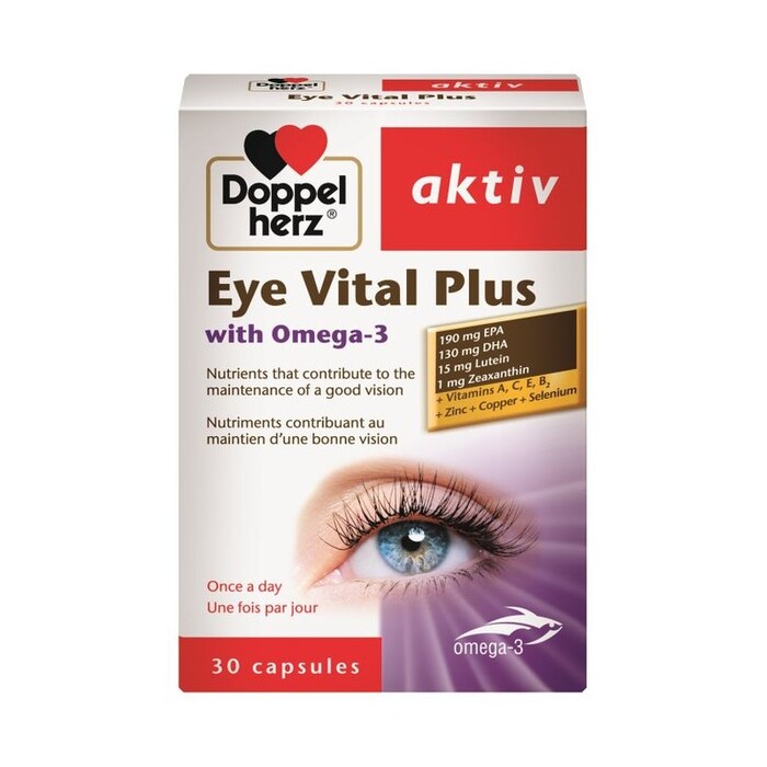 Doppelherz® aktiv Oméga-3 Visio contient une combinaison de nutriments importants pour le fonctionnement du métabolisme et des défenses naturelles des cellules visuelles: les vitamines A et B2 contribuent à maintenir une vision normale, les antioxydants (vitamines E, C, zinc, cuivre et sélénium), la lutéine, la zéaxanthine ainsi que les acides gras oméga-3 DHA et EPA protègent les cellules photoréceptrices contre les attaques des radicaux libres. Ceux-ci sont générés au sein-même de la rétine sous l’action de la lumière solaire, en particulier dans les longueurs d’ondes bleues proches des ultraviolets.