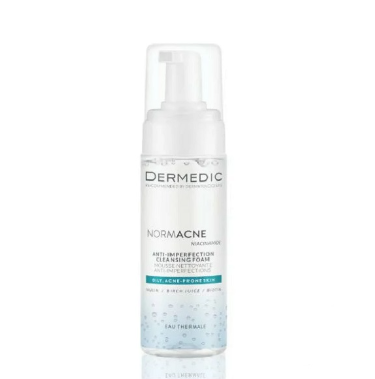 DERMEDIC NORMACNE MOUSSE ANTI IMPERFECTIONS conçue pour nettoyer les peaux mixtes et grasses sensibles présentant des lésions d’acné.