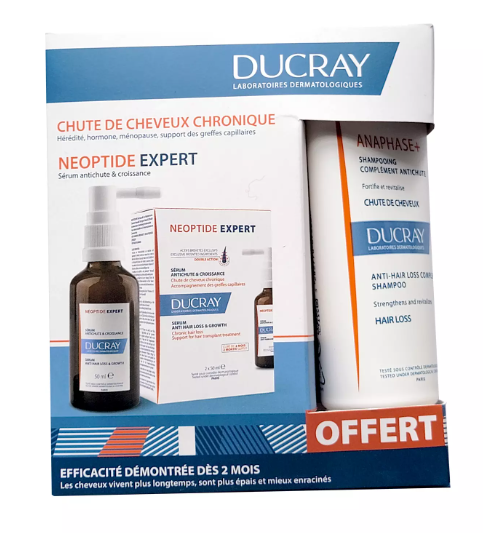 Ce coffret DUCRAY est une routine pour chute de cheveux chronique. il contient : – Le Sérum NEOPTIDE EXPERT double action contribue à lutter contre la chute de cheveux chronique et à stimuler la croissance du cheveu. – Le shampooing anti-chute Anaphase+ 200ML à -50%