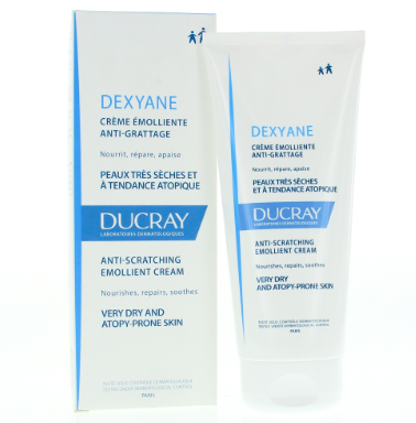 Ducray Dexyane Crème Emolliente Anti-Grattage 200 ml à la texture réconfortante est recommandée pour nourrir, réparer, apaiser les peaux très sèches à tendance atopique de toute la famille.