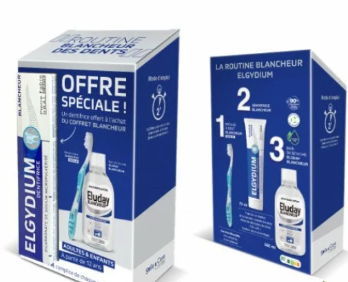 ELGYDIUM DENTIFRICE BLANCHEUR 75ML OFFERT : ELGYDIUM BLANCHEUR est un dentifrice qui contribue à éliminer les taches dentaires superficielles (dues notamment à l alimentation ou au tabac) tout en respectant les dents. Aromatisé à la menthe, il prolonge la blancheur obtenue après un détartrage ou un éclaircissement professionnel