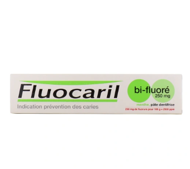 Fluocaril Bi-fluoré 250 mg est une pâte dentifrice à haute teneur en fluor, permettant de renforcer l émail dentaire et de combattre la plaque dentaire. Ce dentifrice vient protéger les dents des enzymes et des acides sécrétés par les bactéries. Fluocaril est recommandé par les dentistes et médecins dans le traitement préventif des caries dentaires.