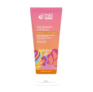 Green Nature Mohea Après-Soleil Gel Douche Exfoliant Mangue Exotique Bio 200ml est un gel douche exfoliant associe le noyaux d’abricot et des éclats de noix de coco pour exfolier délicatement votre peau.Il est enrichi en extraits végétaux de mangue, papaye et aloe Vera, il laissera votre peau douce et lumineuse !