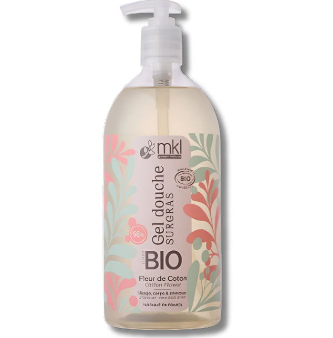 MKL Green Nature Gel Douche Surgras Fleur de Coton Bio 1 L est un gel douche surgras formulé à base d’huile d’Argan bio et d’extraits végétaux biologiques de coton et d’Aloe vera. Sa base lavante d’origine naturelle, sans savon et dérivée de la coco, nettoie la peau en douceur.