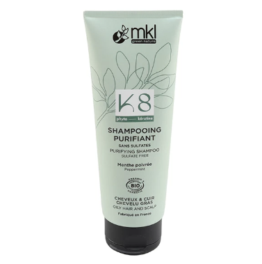 Le shampooing Purifiant MKL à la menthe poivrée Bio permet d assainir et de purifier le cuir chevelu gras pour pouvoir obtenir des cheveux légers et aérés. Il contribue à restaurer l équilibre au sein du cuir chevelu et possède une action anti-séborrhéique.