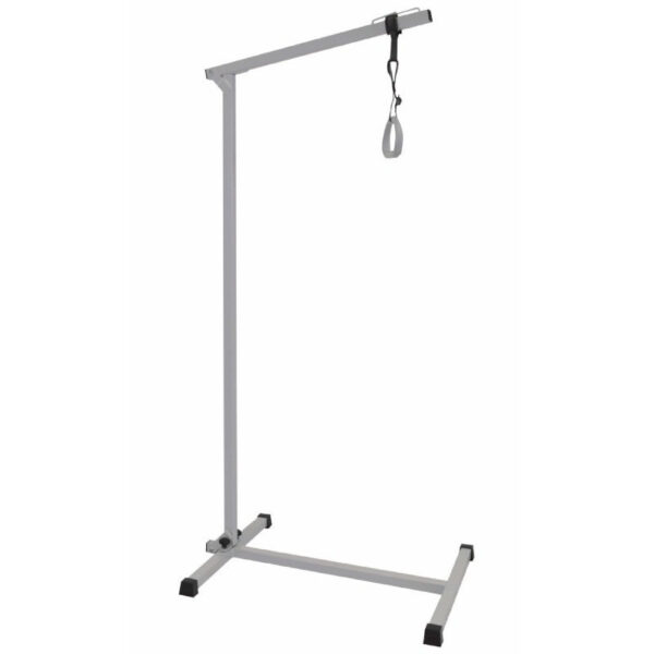 La potence sur socle aide les personnes à mobilité réduite à se redresser d eux-mêmes aussi bien d une chaise que d un lit. Elle comporte une poignée suspendue à une sangle ajustable. En gris, base en acier chromé