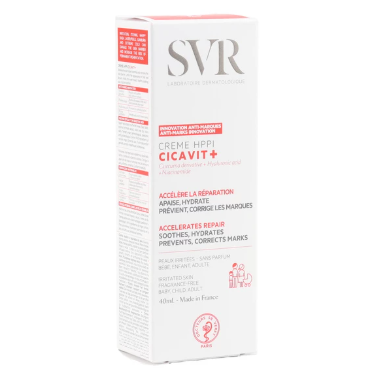 Adaptée aux peaux sensibles, cette crème HPPI Cicavit+ du laboratoire SVR pénètre rapidement le derme et en profondeur pour ne laisser aucune sensation grasse sur la peau. Contre les cicatrices, nous vous recommandons l usage du gel silicone DM+ Cicavit SVR.