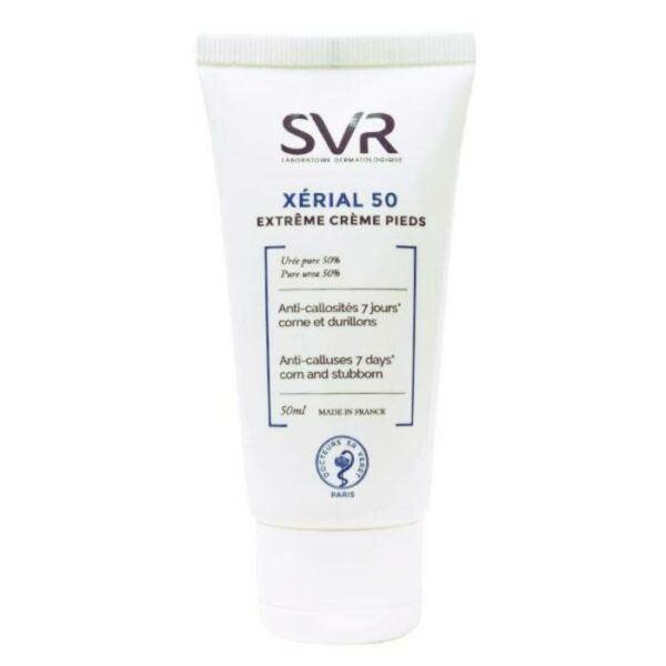 SVR Xérial 50 extrême est une crème qui réduit efficacement les callosités et les durillons rebelles présents sur les pieds, et ce, en un temps record : 7 jours. En effet, grâce à sa composition : technologie Urée pure concentrée à 50%, protéase, acides aminés et acide salicylique, Xérail 50 extrême est capable d éliminer en une semaine les callosités et les durillons rebelles des pieds et ainsi rendre la peau lisse et souple.